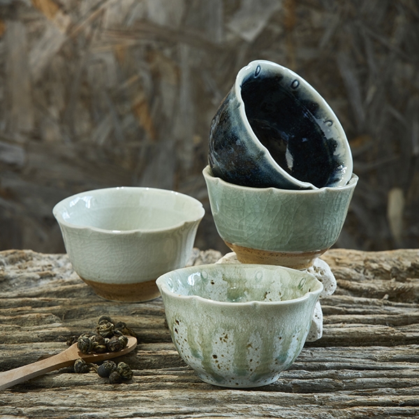 Simplicité et raffinement sont les traits distinctifs de la céramique japonaise traditionnelle, qui a atteint son apogée il y a environ 400 ans, avec l'avènement de la cérémonie du thé. Cet ensemble de quatre tasses de couleurs différentes est réalisé par des maîtres artisans dans une forme évasée poétique en forme de fleur.
